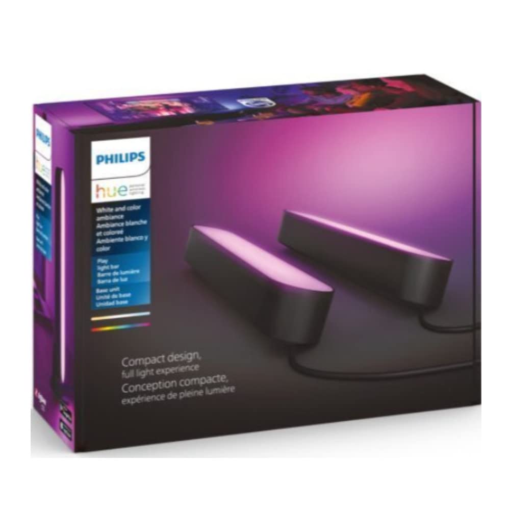 $45.00 Philips Hue Play Starter Kit Two Black Hue Play Light Bars, Hue Hub, and Power Supply, Compatible with Alexa