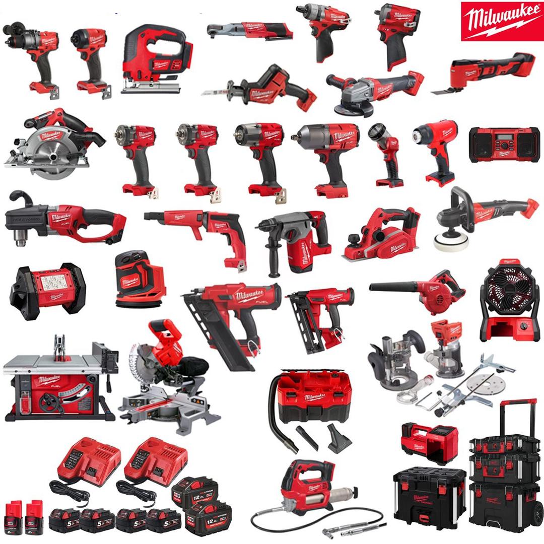 SKU: N/AMILWAUKEE MILKIT34X POWER TOOL KIT 2-12V-2AH + 4-18V-5AH + 2 X 18V X 12AH REDLITHIUM BATTERIES 22PCE