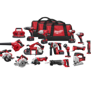 Includes: one 2904-20 Hammer Drill/Driver, one 2953-20 Impact Driver, one 2821-20 SAWZALL Reciprocating Saw, one 2730-20 6-1/2 in. Circular Saw, one 2880-20 M18 Fuel 4-1/2 in Grinder w/Paddle switch, one 2962-20 M18 Fuel 1/2″ Mid Torque Impact Wrench w/Friction Ring, one 2735-20 LED work light, two 48-11-1850batteries, one 48-59-1812battery charger, 2 contractor bags