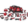 The 2695-15 M18™ cordless 15-tool combo kit includes the 1/2″ M18™ Compact Hammer Drill/Driver (2607-20), M18™ 1/4″ Hex Impact Driver (2656-20), M18™ 1/2″ Compact Impact Wrench with Pin Detent (2659-20), M18™ 1/2″ High-Torque Impact Wrench with Friction Ring (2663-20), M18™ Right Angle Drill (2615-20) , M18™ 5/8 SDS Plus Rotary Hammer (2612-20), M18™ Sawzall Recip Saw (2620-20), M18™ Bandsaw (2629-20), M18™ 6 1/2″ Circular Saw (2630-20), M18™ 5 3/8″ Metal Saw (2682-20), M18™ Cut-off/Grinder (2680-20), M18™ Jig Saw (2645-20), M18™ Multi-Tool (2626-20), M18™ Compact Blower (0884-20), M18™ LED Work Light (2735-20), M18™ Six Pack Sequensital Charger (48-59-1806), and (4) M18™ REDLITHIUM™ XC 4.0 Extended Capacity Battery Packs. The M18™ Cordless lithium-ion system’s patented technologies and electronics, innovative motor design, and superior ergonomics provide the most efficient blend of power, weight and performance in the industry. Powered by REDLITHIUM™ the M18™ cordless system delivers more torque, more power, and longer run-time than the competition.