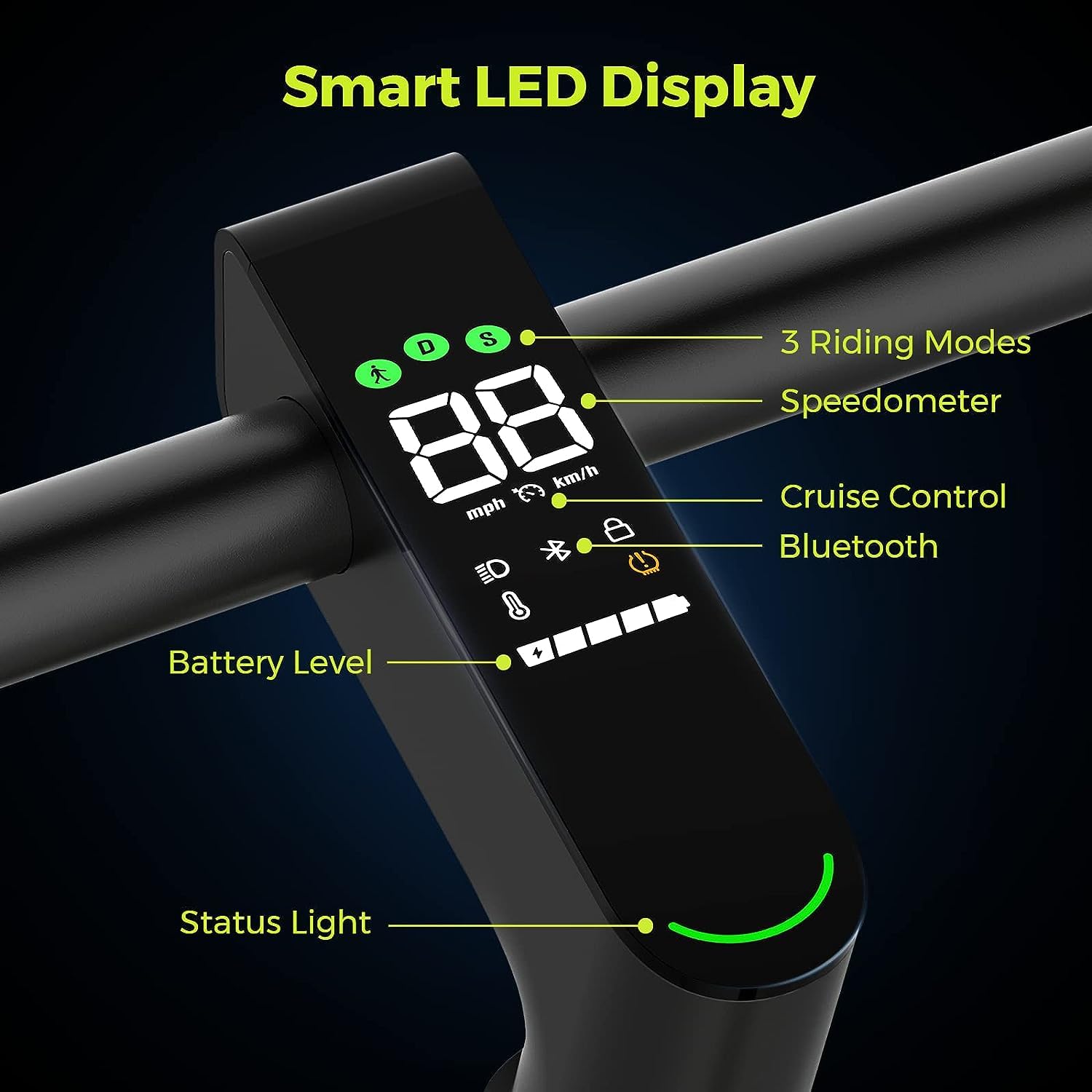 - ๐ดใ1000W Max Power & Max load 265 lbsใ:The E-Scooter Equipped with a peak 1000W power motor, with more scientific and comfortable algorithm control, making the effective climbing ability reaches 25%, this scooter can reach a max speed of 32KM/H and net weight is only 52 lbs, can handle up to 265 lbs,delivering a faster climbing and smoother riding experience.
