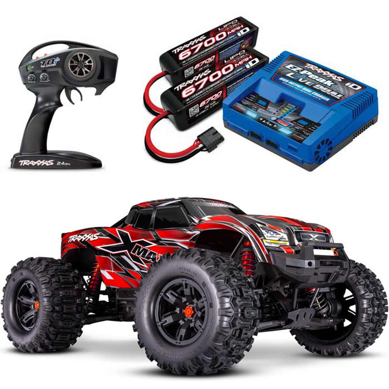 This is the Traxxas X-Maxx 4WD 8S Brushless Ready-to-Race Monster Truck COMBO with TWO 4S 6700mAh batteries and the EZ-Peak Live ID DUAL OUTPUT quick charger.